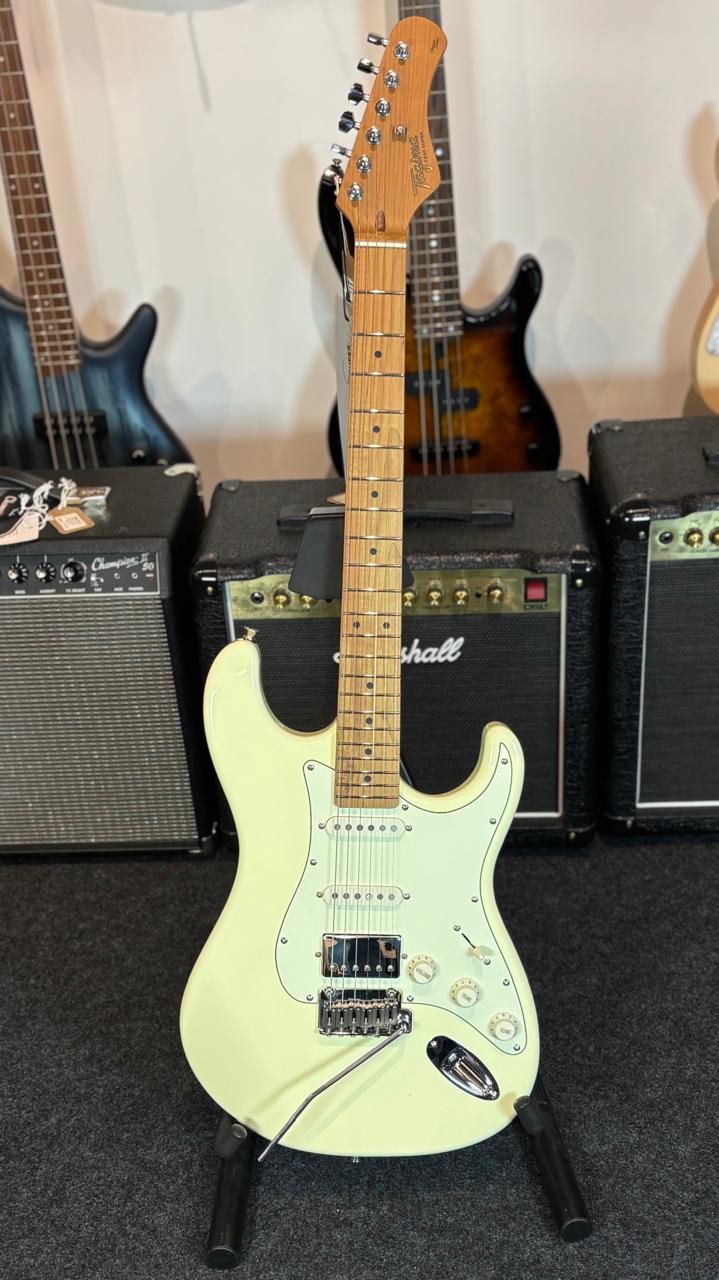 A Guitarra T-640 Super é uma verdadeira máquina do rock, inspirada nos icônicos modelos dos anos 80, com um visual clássico que vai te transportar direto para a era de ouro do Hard Rock e Heavy Metal. Com um corpo em Alder e braço em Roasted Maple, este modelo oferece não só uma estética retrô, mas também uma construção robusta que garante conforto e estabilidade em cada riff. A captação de Alnico traz o timbre quente e poderoso, ideal para quem busca um som forte e expressivo, perfeito para se destacar em solos ou nas batidas mais pesadas.